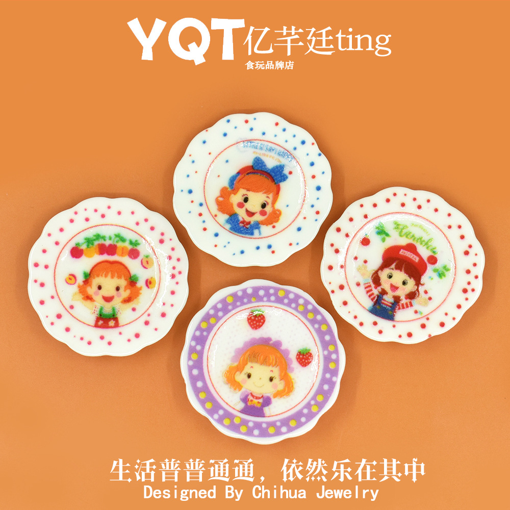 YQT漫画かわいい女の子ダイニングプレートミニチュア食游びオリジナルデザインdiy树脂アクセサリーおままごとおもちゃ置物