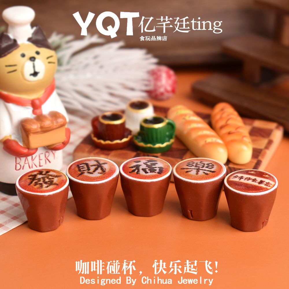 YQT新年祝福コーヒーカップ微縮食遊び金持ち福字樹脂diyアクセサリー人形屋デスクトップ置物