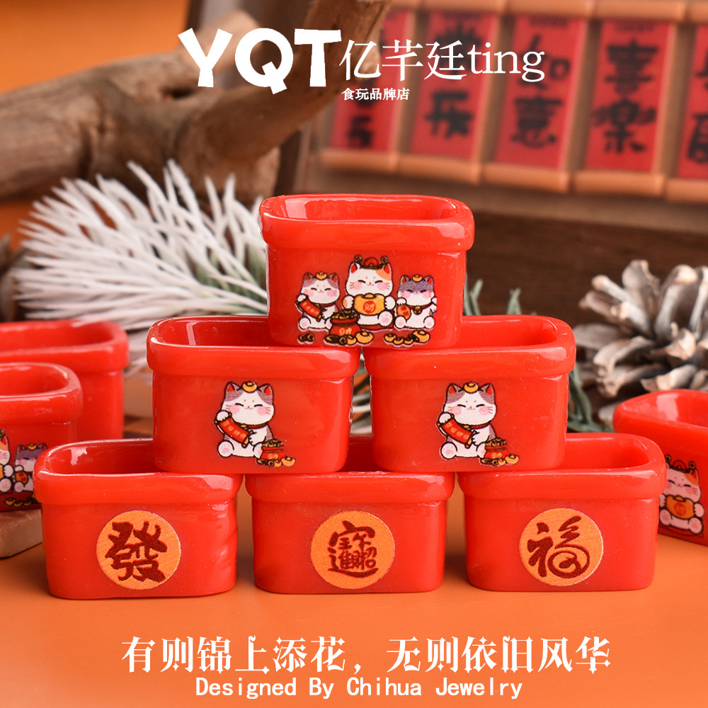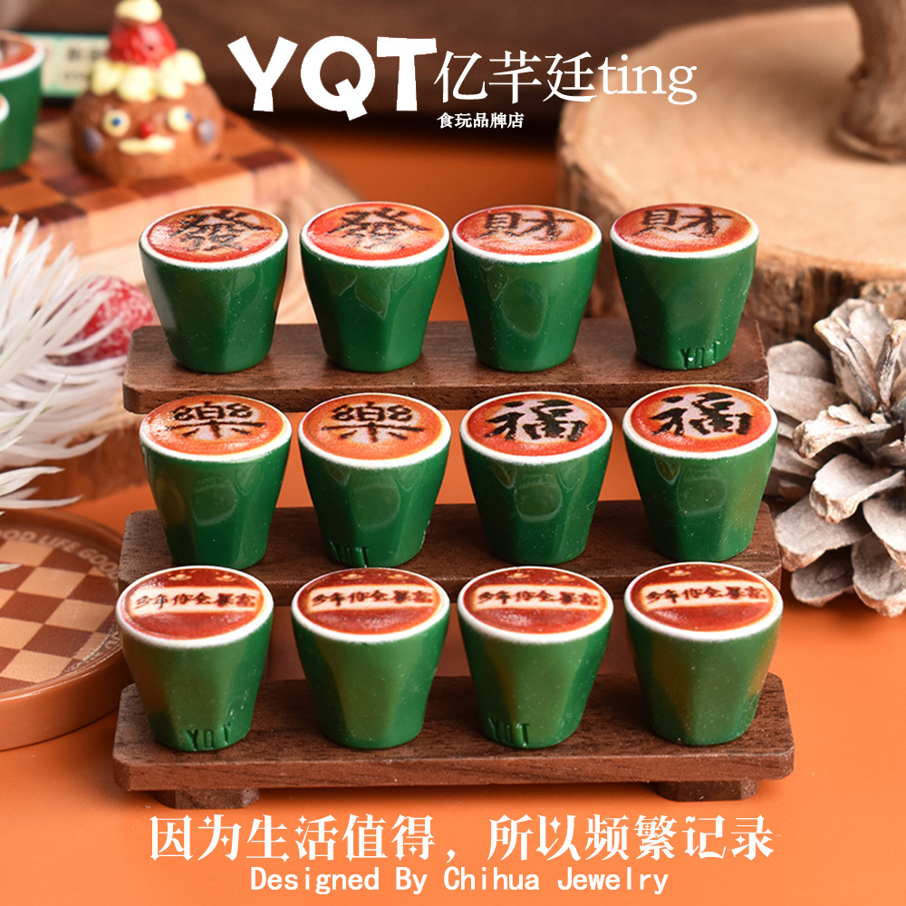 YQT新年祝福コーヒーカップdiy食遊びクリーム樹脂部品人形屋置物冷蔵庫貼りアクセサリー