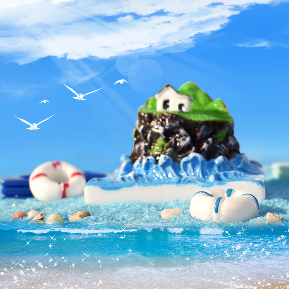 YQTデザインのミニ海島小屋ケーキ微景観DIY樹脂クリームゴム部品微縮食玩具置物