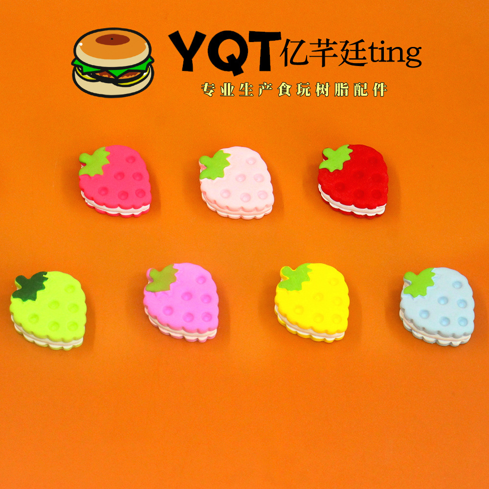 YQTかわいいいちごミニ食游クリームコロムマカロンサンドイッチクッキー樹脂diyアクセサリー小物