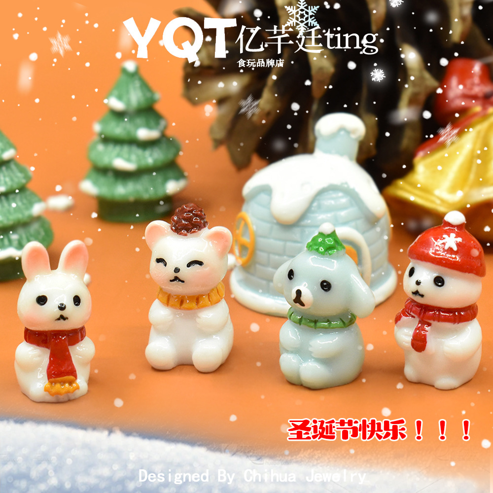 YQTオリジナルデザインかわいいクリスマス小動物立体公仔DIY樹脂部品クリスマス微景観置物