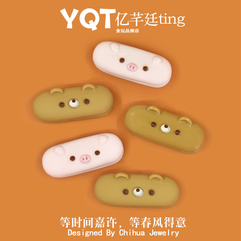 YQTミニ子豚パンdiyクリーム樹脂部品熊食游携帯ケース創意飾り小物