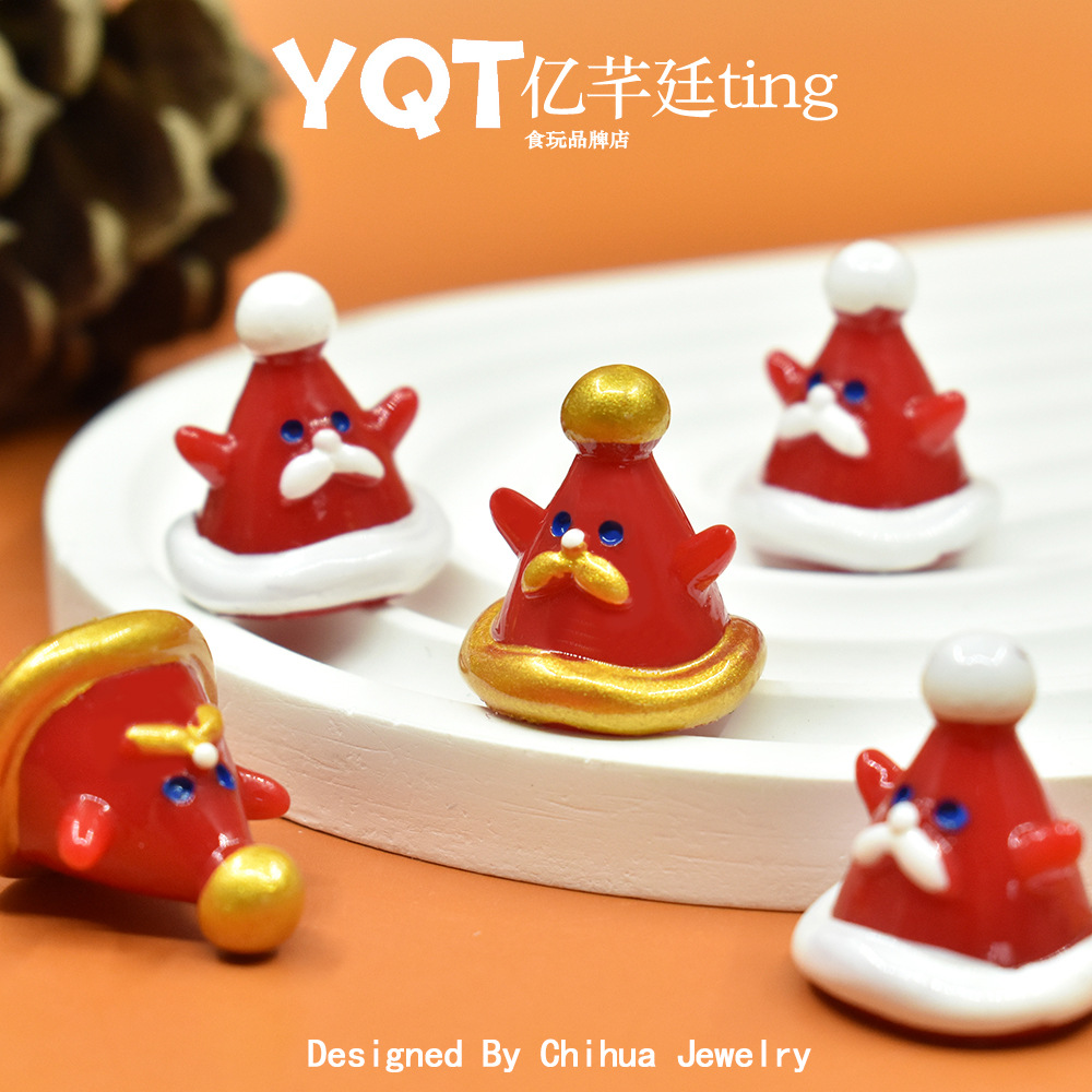 YQTオリジナルデザインダンスサンタクロース帽DIY樹脂食游小物クリスマス立体人形置物