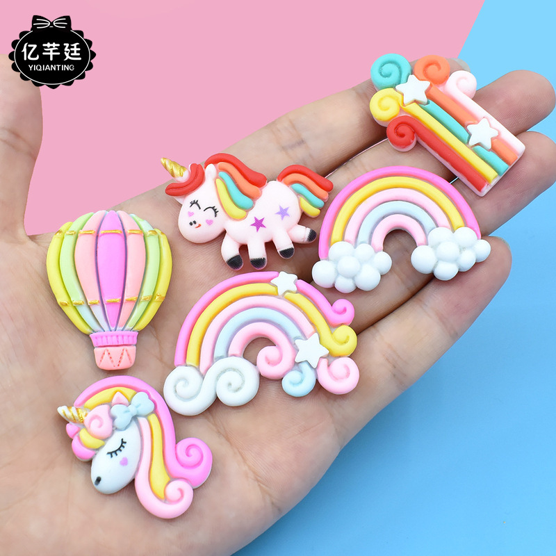 新型樹脂部品虹ユニコーン熱気球diyクリームペースト携帯電話ケース冷蔵庫貼りヘアピン貼り