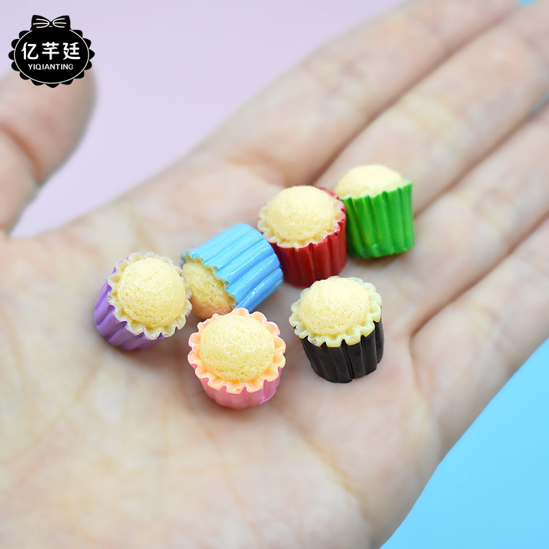 樹脂部品のミニチュア食品は紙コップのケーキを遊びます。