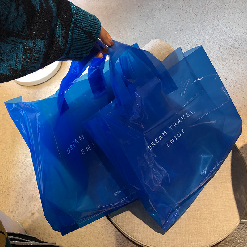 シンプルで透明な洋服店の婦人服ショッピング手提げビニール袋プレゼント包装袋卸売りはロゴを印刷できる