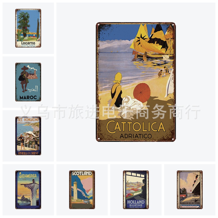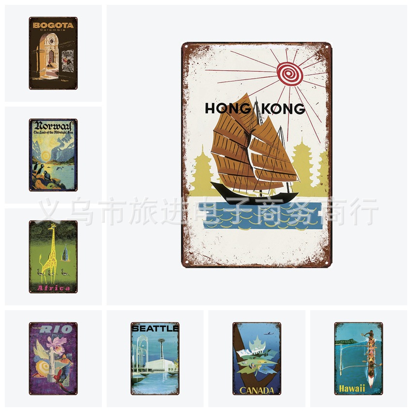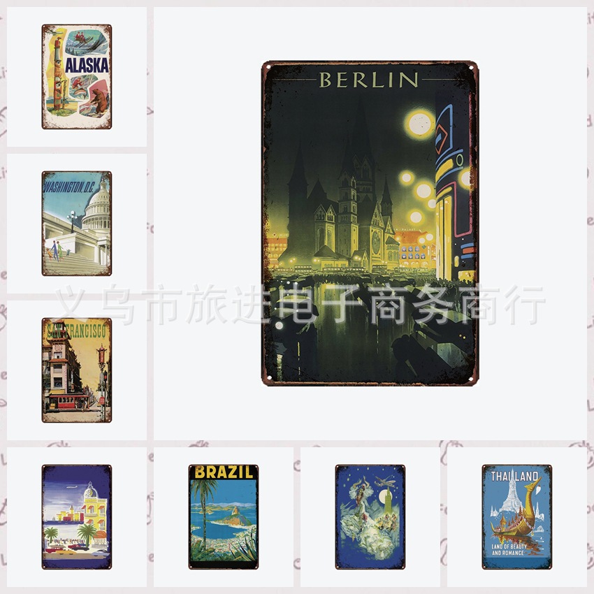 世界観光都市ブリキ画ブリキ画レトロ装飾アマゾンwish速売通ソース