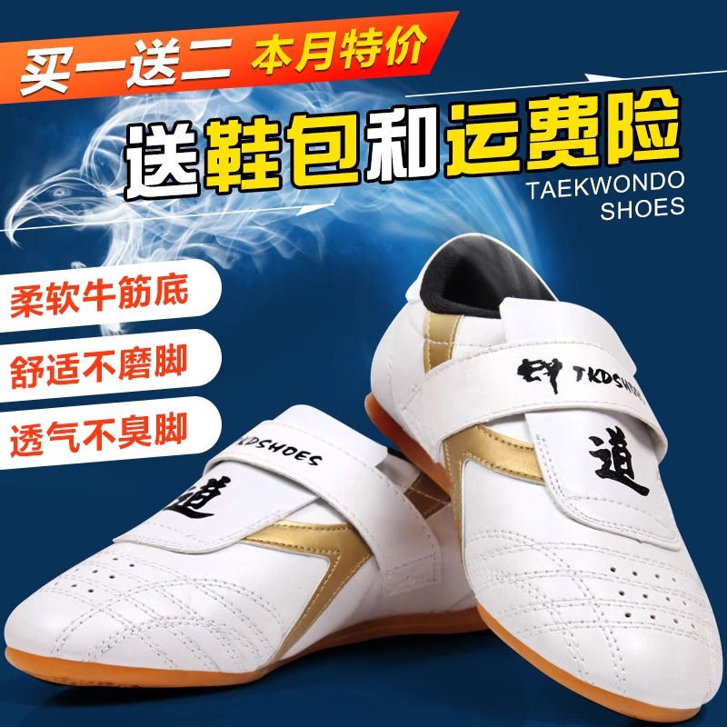 テコンドーの靴の子供の男女の金の秋冬の通気性の牛の筋肉の底の武術の靴の競争の専門は道の靴を訓練します