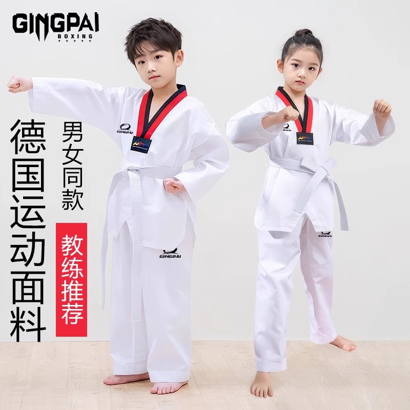 意立者テコンドー服長袖純綿男女児童成人訓練試合用春秋冬道館用
