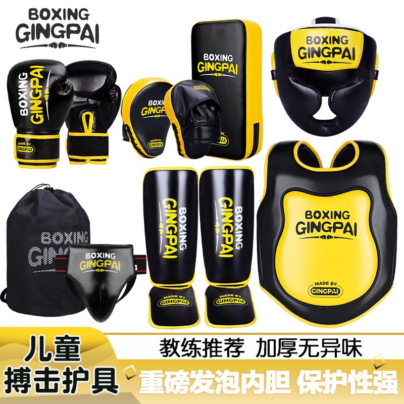 子供用散打保護具格闘セットボクシングマスク保護ヘルメット胸股脚男少女トレーニングテコンドー泰拳