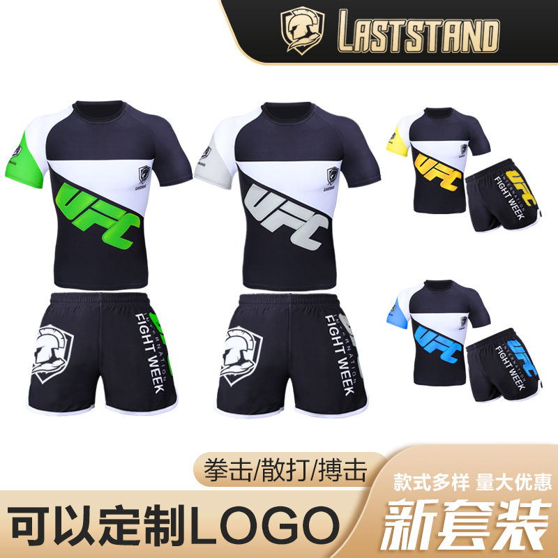 ボクシングトレーニング服散打格闘タイ拳半ズボンレオタード格闘半袖速乾長袖男性スーツ高弾