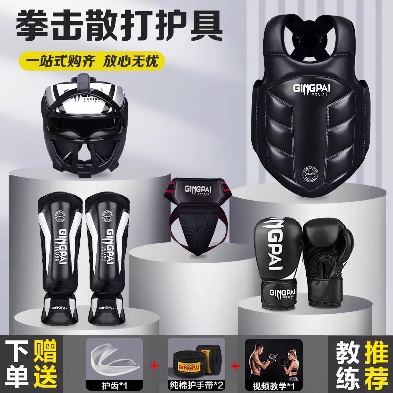 成人専門散打格闘保護具セットボクシングヘルメット胸保護レギンストレーニング試合鎧子供男女