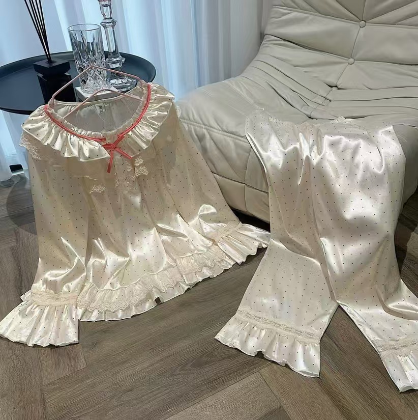 韓国ins女性のシルクのレースは王女の純粋な欲望の宮廷風のパジャマのスーツの部屋の服の女性をつなぎ合わせて外に着ることができます。