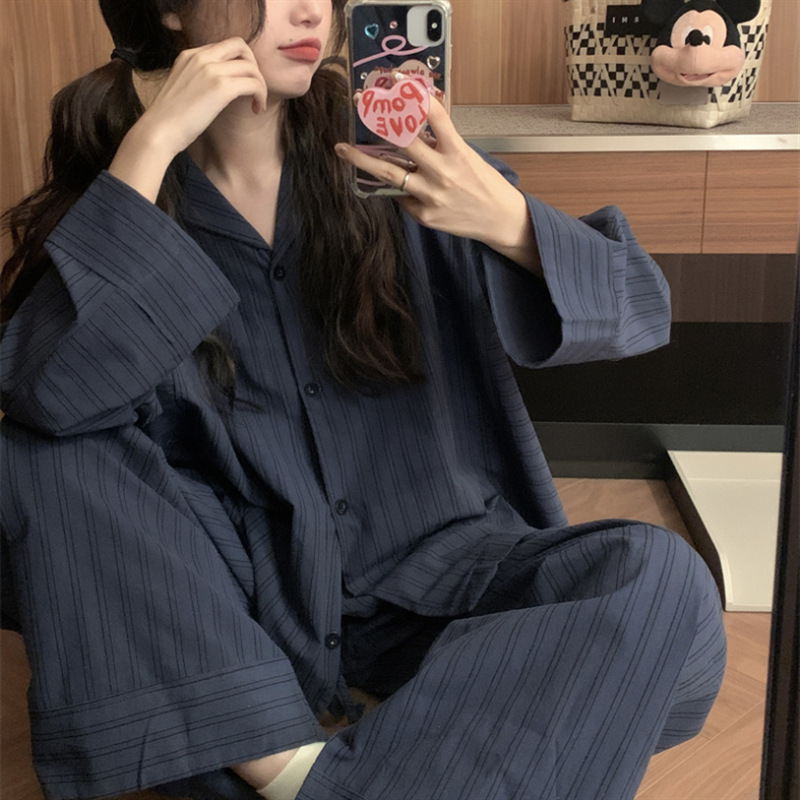韓国ins新作パジャマ女性韓国系ストライプシンプルで快適なレーススーツ