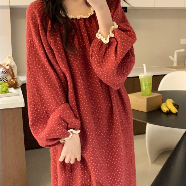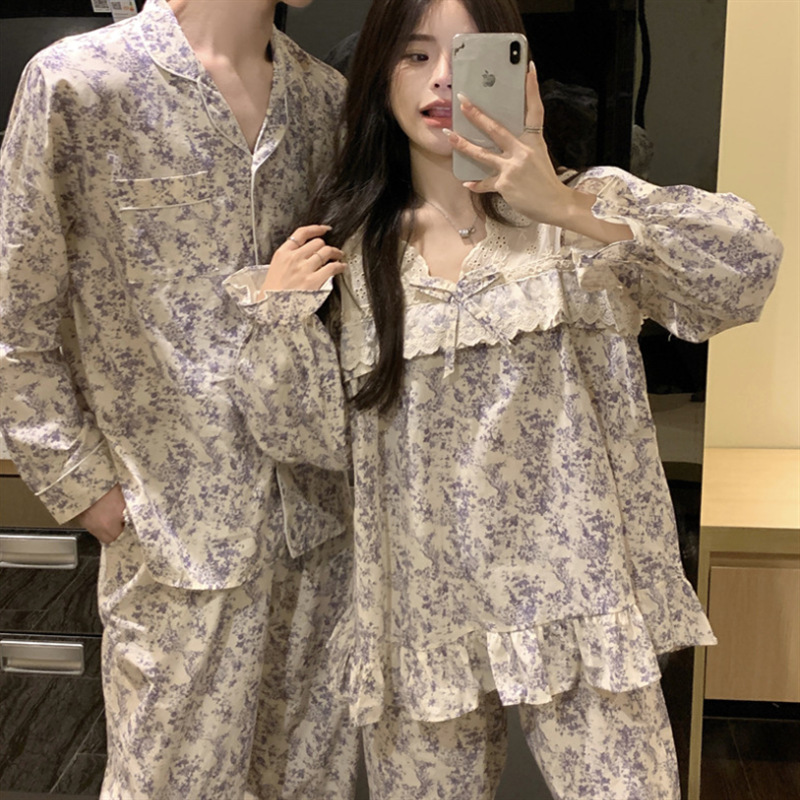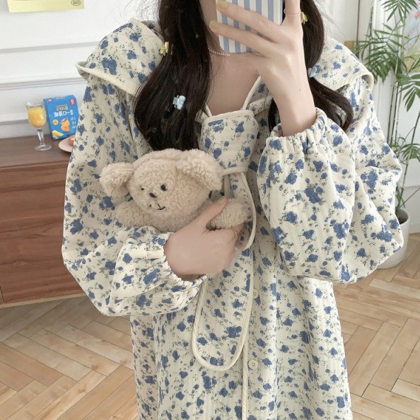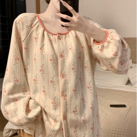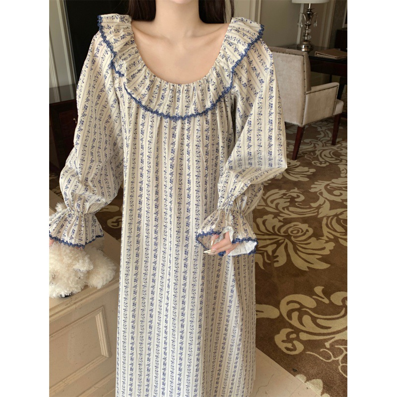韓国ins女性外国貿易韓国版甘い花レトロ田園長袖パジャマワンピース春夏新パジャマ