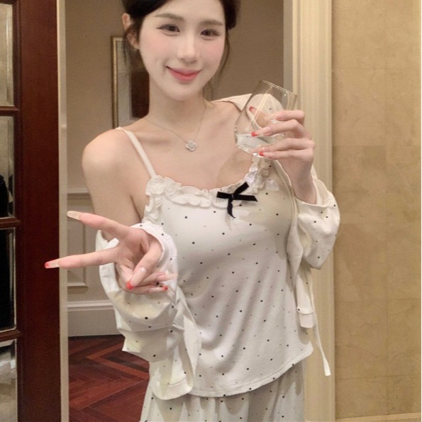 韓国ins春夏甘美純欲少女感ストラップ三点セットズボン外着ホームウェアパジャマセット