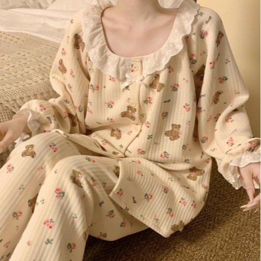 韓国ins女性の新しいパジャマ女性韓国系かわいい減齢アニメレースセットカジュアルゆるいホームウェア