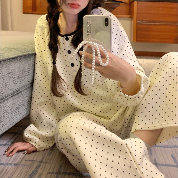 韓国insさん秋冬新作パジャマ女性の空気層は綿を挟んで柔らかくて暖かいです。