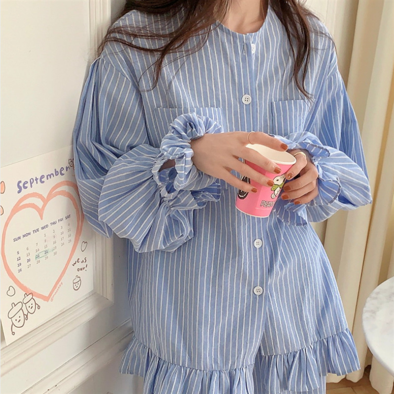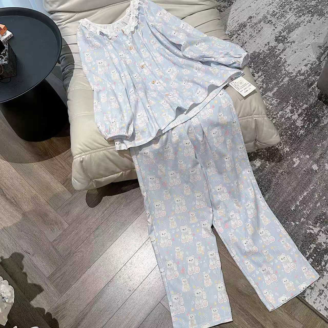 韓国insさん春と秋の新型韓国版ブルー全綿ホームウェアセットかわいい長ズボン雲の外国貿易女性
