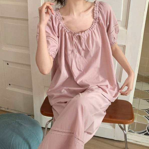 韓国ins女性外国貿易韓国版ジャカード甘いレースロマンチックなプリンセス風レースゆるいホームウェアセット