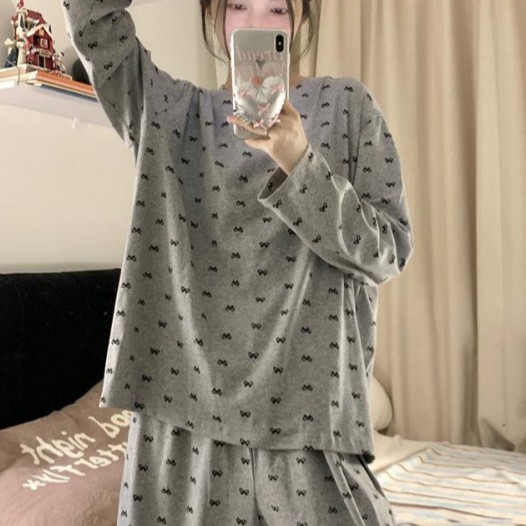 韓国ins新型パジャマ女性韓国系かわいい減齢蝶ネクタイセットカジュアルで快適で怠惰な家庭服