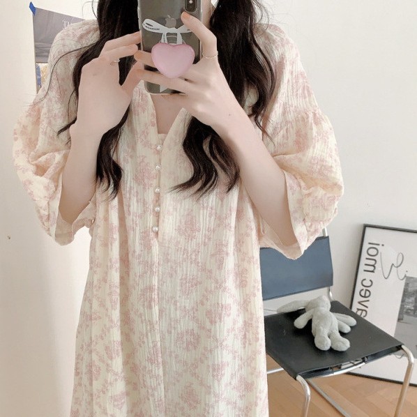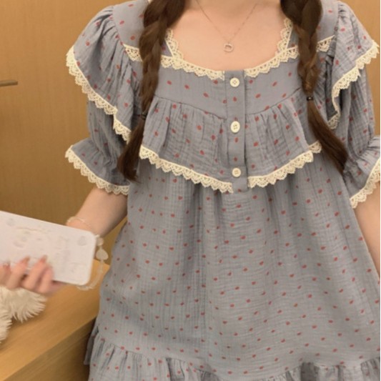 韓国insさん韓国版甘いお姫様風半袖ソフト綿双糸肌ゆるいホームスーツ
