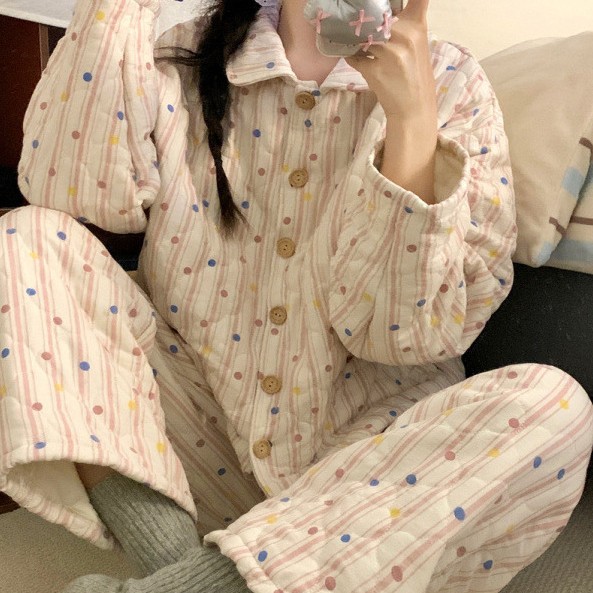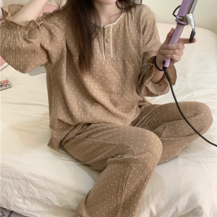 韓国ins外国貿易女性秋冬新商品韓国版赤ちゃん綿綿糸波点パジャマかわいい家庭服セット