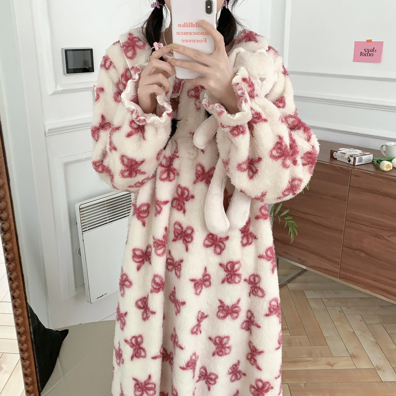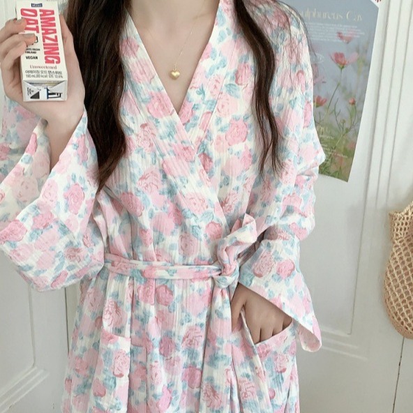 韓国ins新商品韓国版パジャマ女性の秋のシンプルな花の寝衣2024新バスローブの家庭服女性