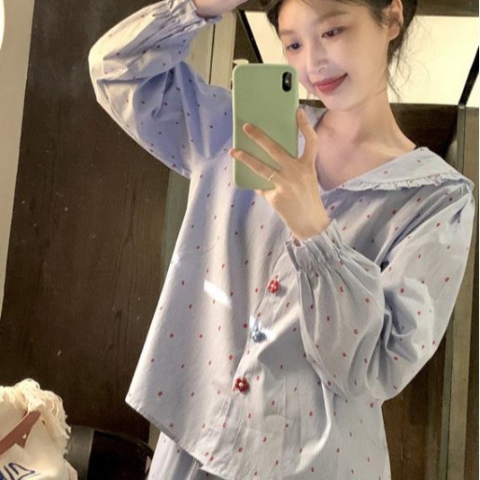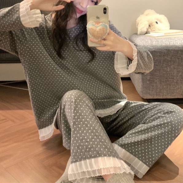 韓国ins女性の新しいパジャマ女性韓国系ドットシンプルで快適なスーツカジュアルでゆるい怠惰な家庭服
