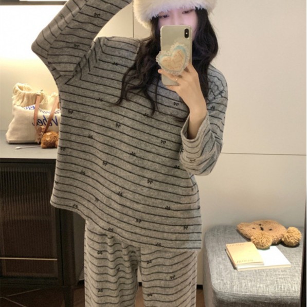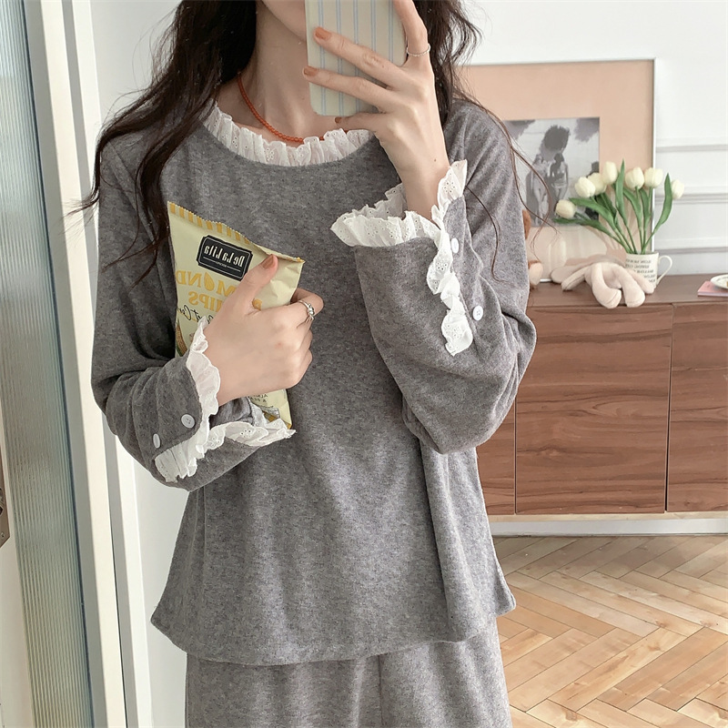 韓国インスタレディース新作パジャマレディース韓国系シンプルで快適レーススーツ厚手ニットパイル感ホームウェア