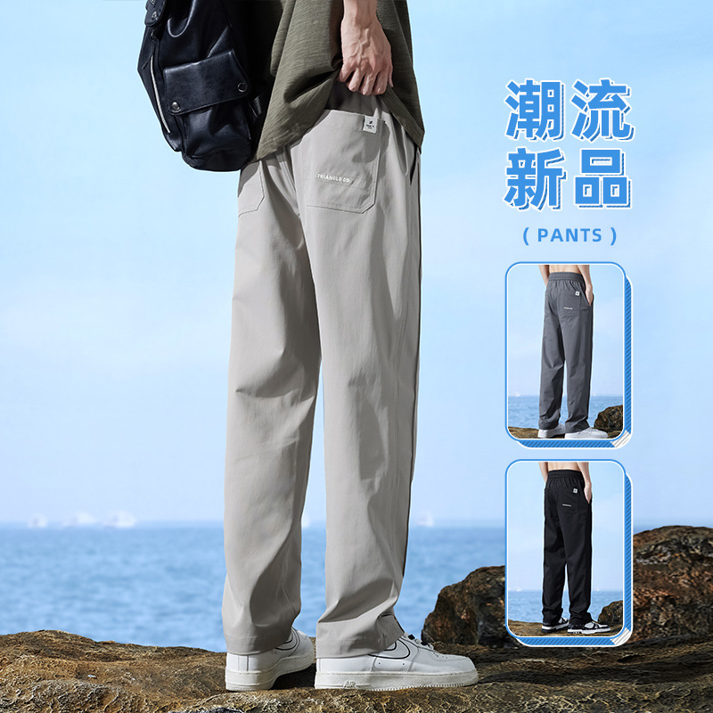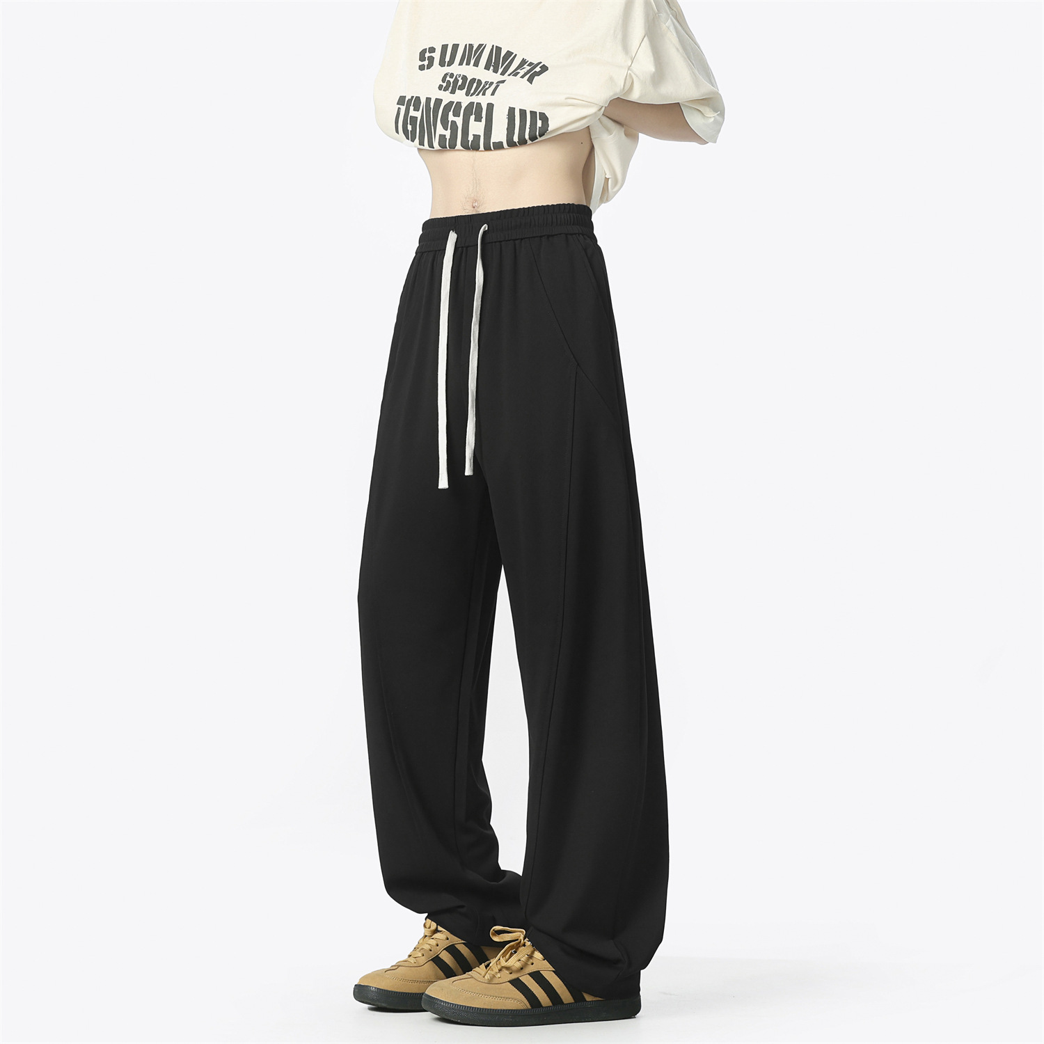 人気の2025新作ファッション夏クールアイスシルクパンツ速乾パンツルーズストレートカジュアルパンツスポーツパンツブラック