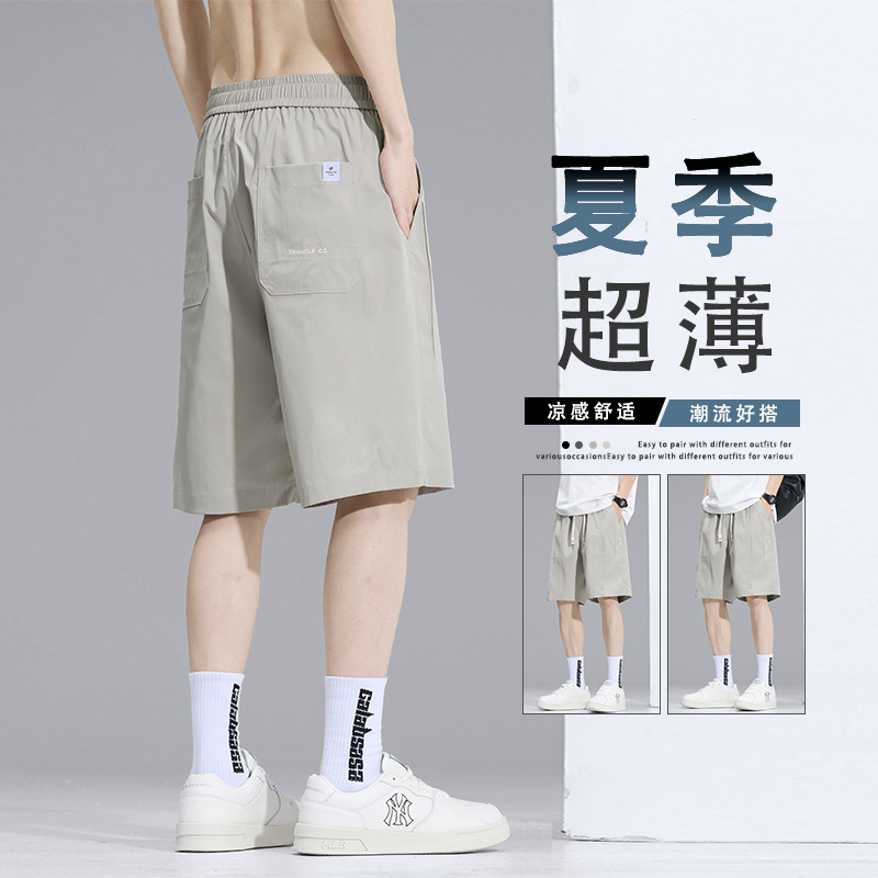 アイスシルクスポーツパンツメンズ 2025 新しい速乾性通気性カジュアルショーツ男の子夏薄いミッドパンツ