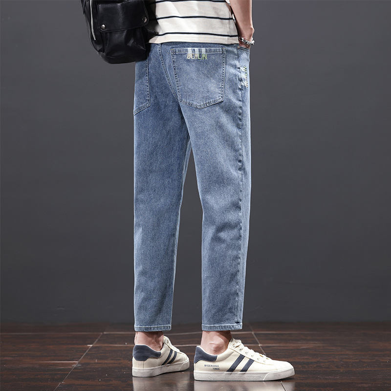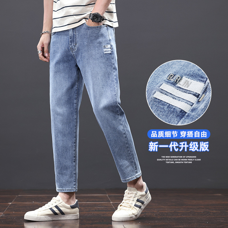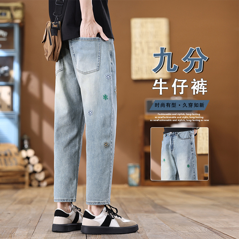 9点ジーンズメンズ2025新作ストレートパンツトレンディブランド夏薄い弾性ルーズカジュアルパンツ春秋スタイル