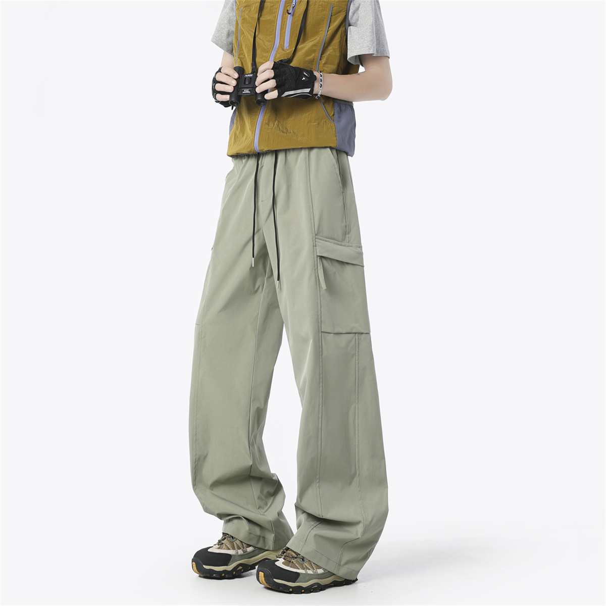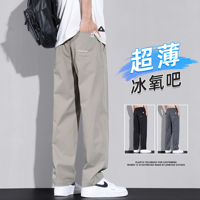 2025 新カジュアルパンツ夏薄いアイスシルクルーズストレート香港スタイルパンツスポーツ機能オーバーオール男性