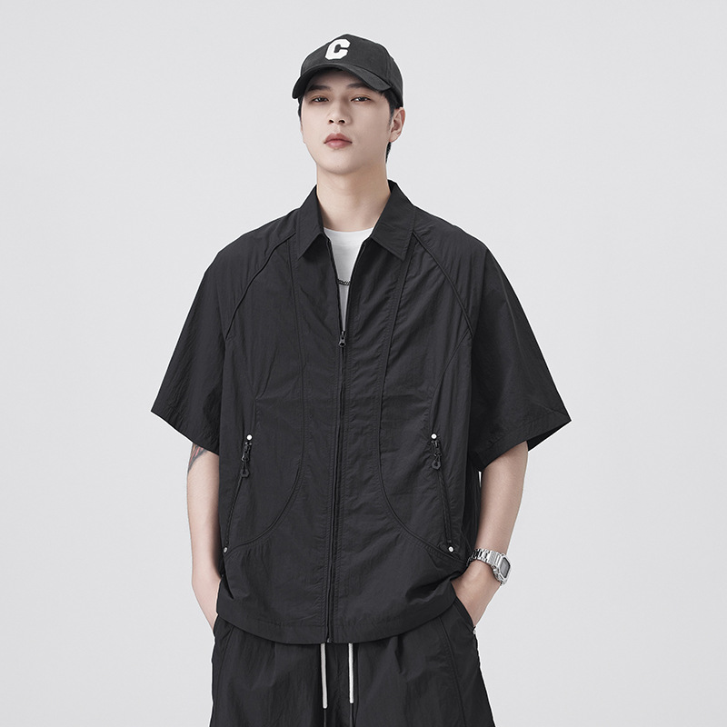 2025 新しい夏の新しい通気性ファッションスプライシングシャツメンズ半袖ハイエンドルーズデコンストラクトデザインシャツ