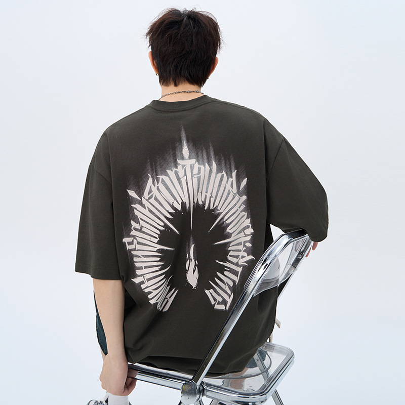 ハイストリートレトロ半袖Tシャツメンズ2025夏新作ヘビーコットンルーズ大きいサイズ半袖トップブラック