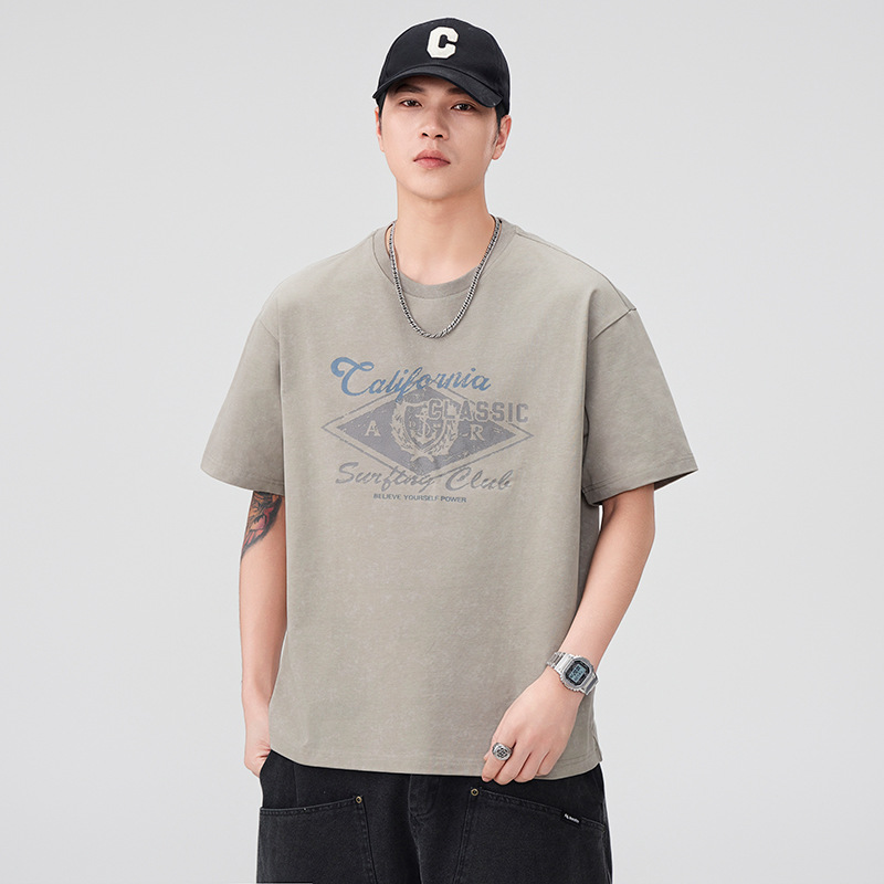 2025 ファッショナブルで多用途なトレンディなメンズアメリカンスタイル 300 グラム綿半袖 T シャツメンズヘビールーズレトロトレンド
