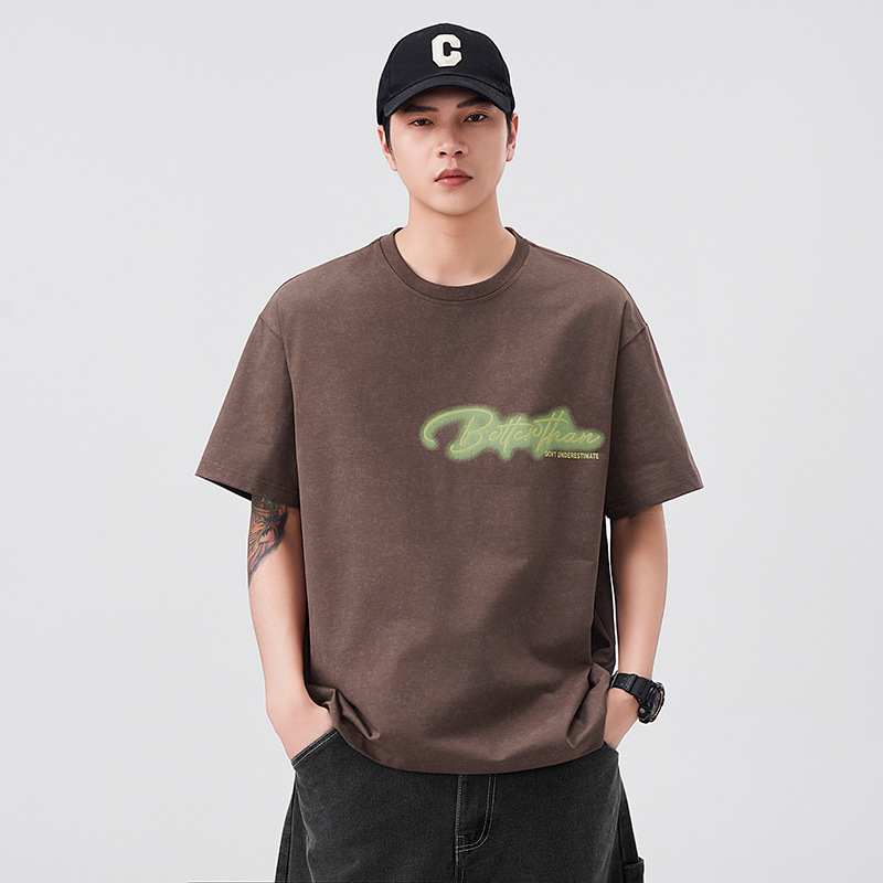 2025 ファッショナブルで多用途なトレンディなメンズアメリカンスタイル 300 グラム綿半袖 T シャツメンズヘビールーズレトロトレンド