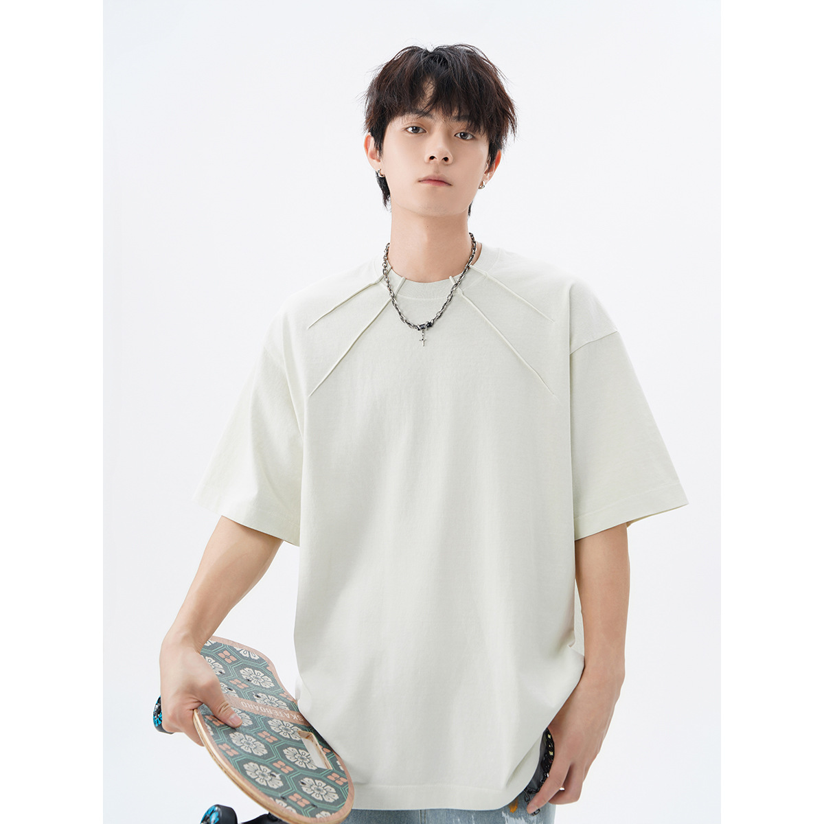 2025 シンプルなトレンディなブランドデコンストラクト半袖メンズ夏の新しいアメリカンハイストリート半袖コットン Tシャツトップ多用途
