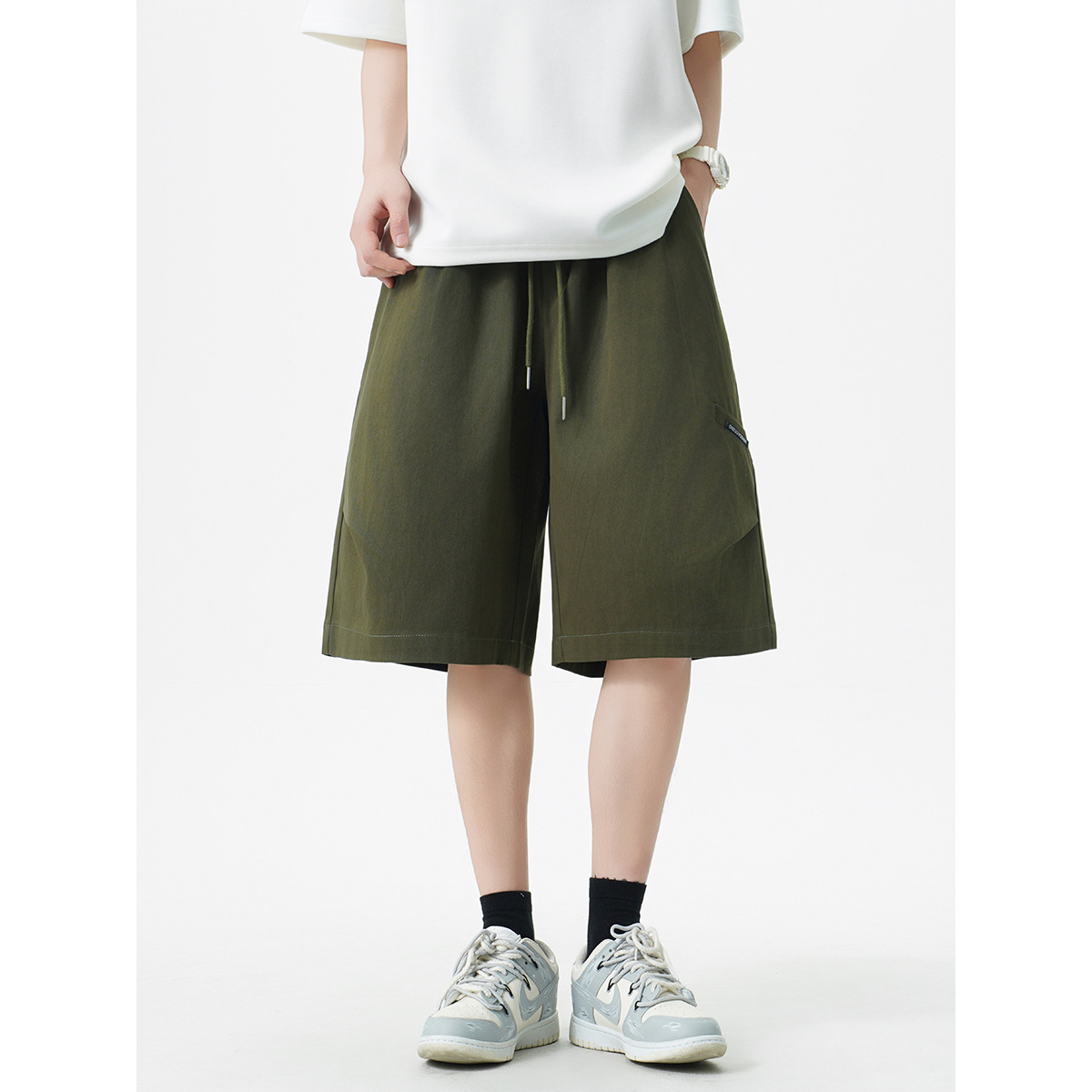 2025 新しいトレンディなブランド香港スタイル 5 点式空挺部隊パンツマウンテンスタイル無地プリーツカジュアルミッドパンツボーイズオーバーオールショートパンツ男性