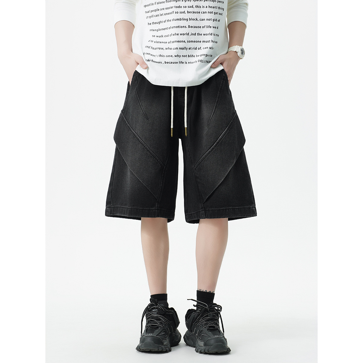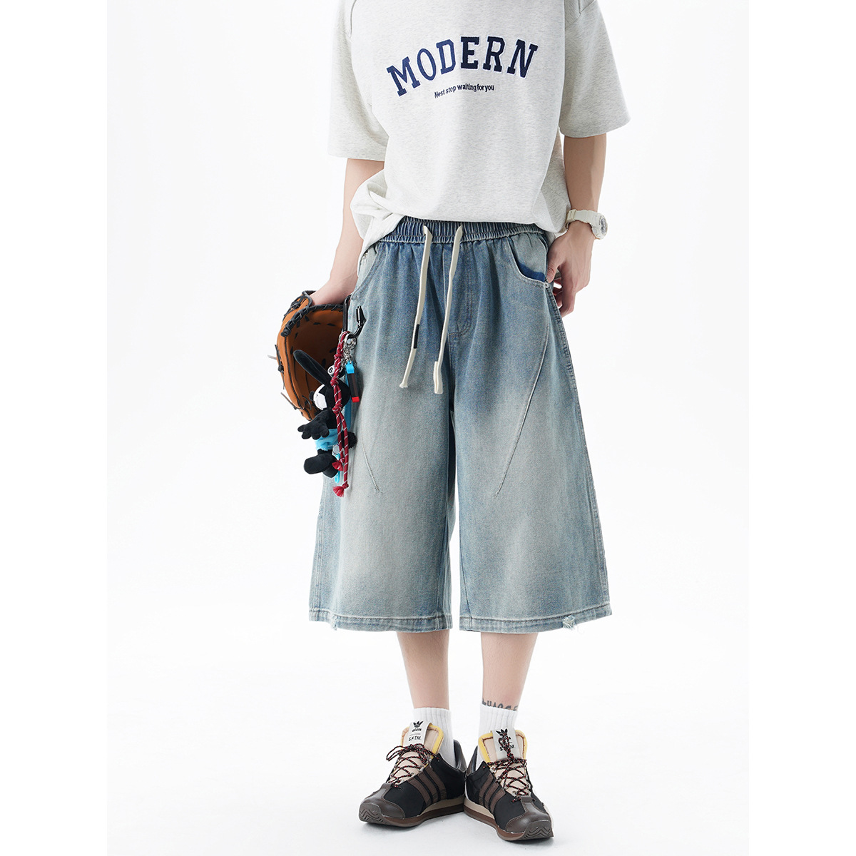 2025 新しいウォッシュデニムクロップドパンツメンズサマーショーツストレートアメリカンルーズカジュアル日本レトロ