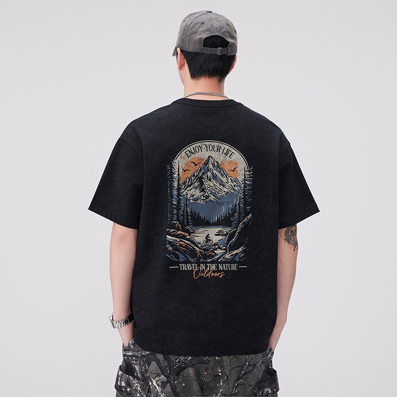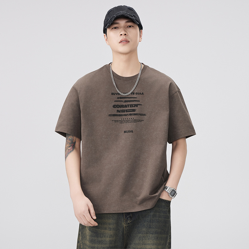 2025 ファッショナブルで多用途なトレンディなメンズアメリカンハイストリート半袖 T シャツメンズ夏ヘビーコットントレンドプリント