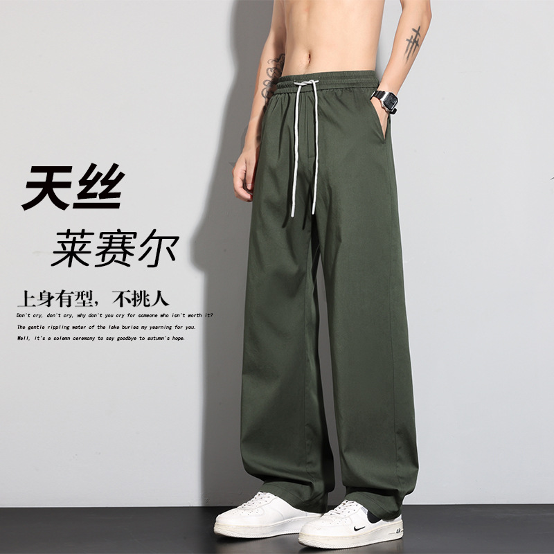 2025 ファッショナブルで多用途なトレンディなメンズ夏香港スタイルリヨセルアイスオキシジェンバークール大きいサイズカジュアルパンツ男性用