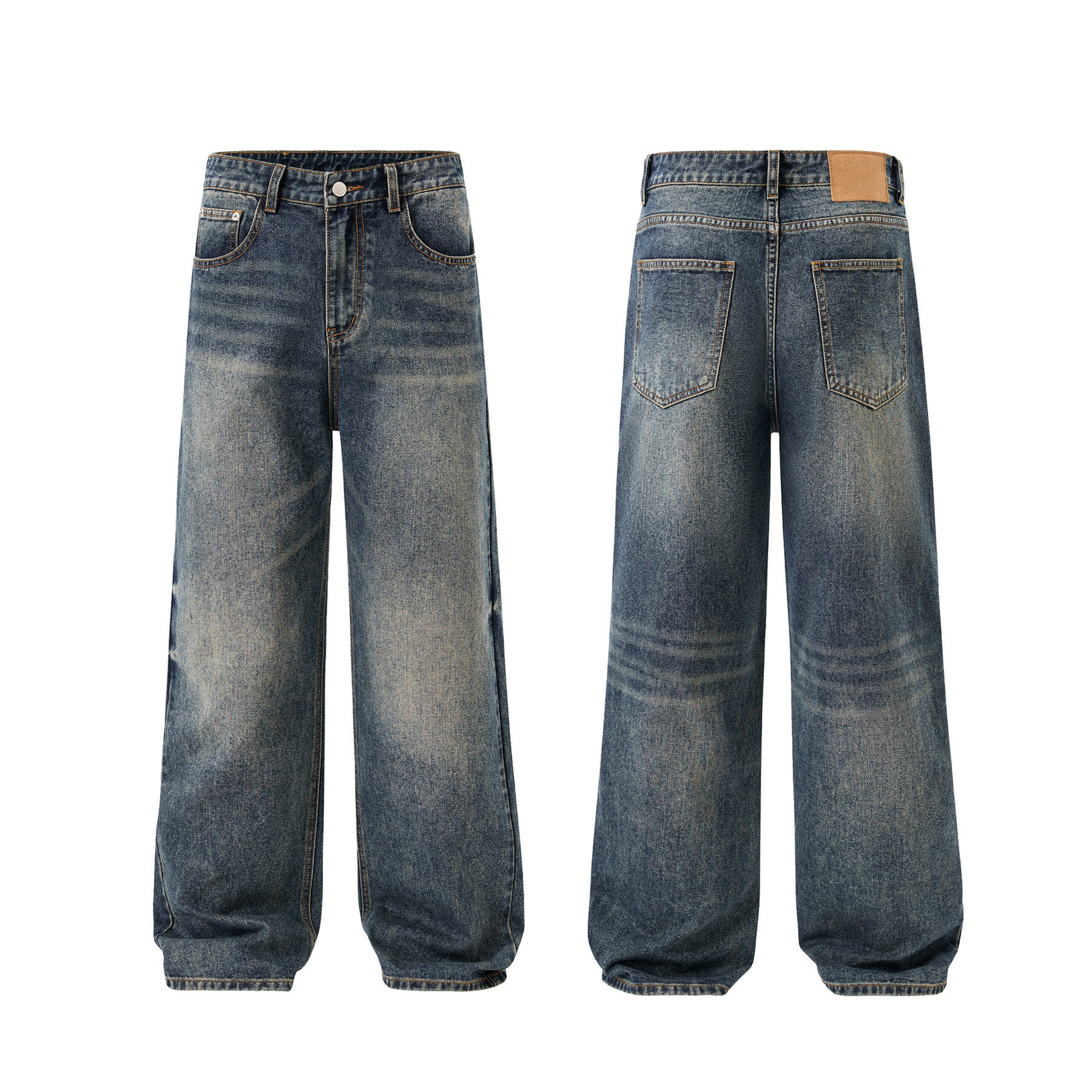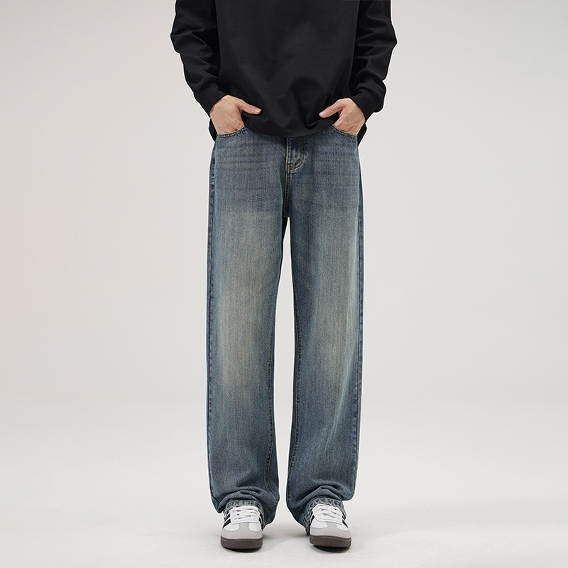2025 春夏新アメリカンクリーンフィットウォッシュレトロヴィンテージジーンズメンズストレートルーズパンツ