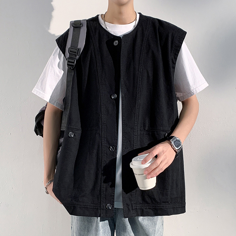 2025年ファッショナブルで多用途なトレンディなメンズサマーデザインワークウェアパッチワークベストアメリカンルーズハンサムトップ