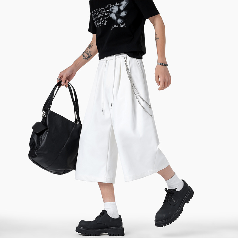 2025 多用途メンズルーズトレンディな夏香港スタイルカジュアルファッションチェーン装飾大きいサイズのクロップドパンツ男性用