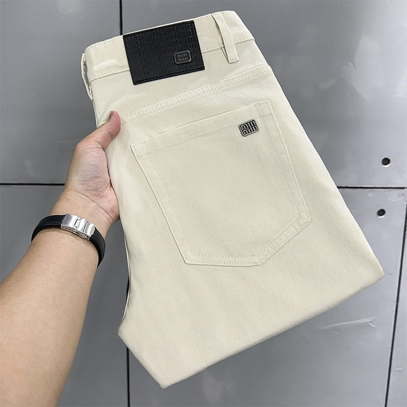 新しいファッショナブルなオフホワイトの高級ジーンズ紳士服 2025 春夏ルーズで多用途なトレンディなブランドカジュアルパンツ