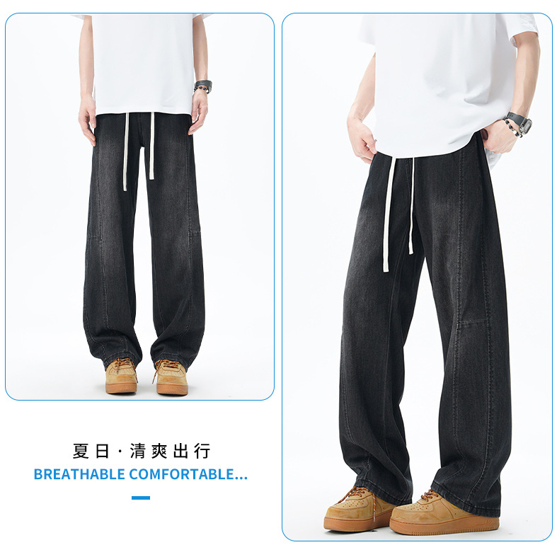 2025 超薄型アイスシルクジーンズ半弾性ウエストルーズカジュアルジーンズダークブルーライトブルー韓国語版手描き