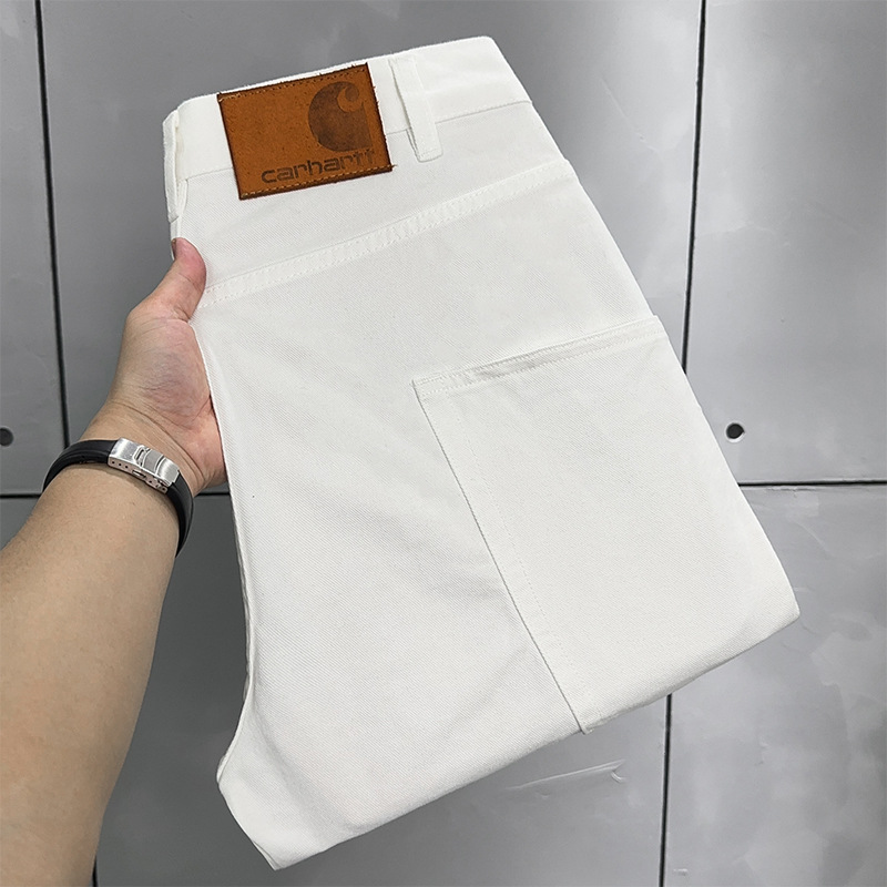 新しい白いハイエンドジーンズメンズ 2025 春夏ファッションルーズで多用途なトレンディなブランドカジュアルパンツ